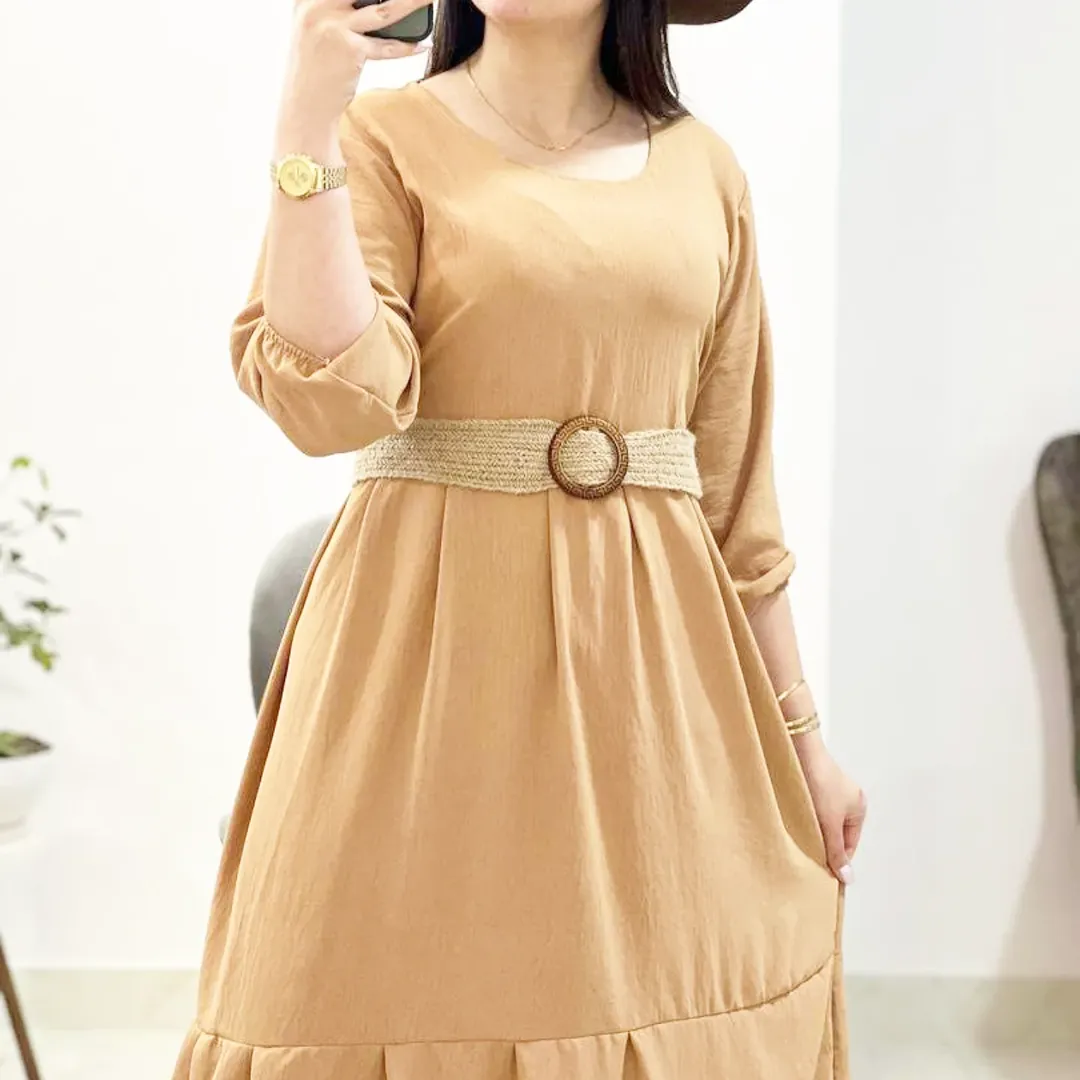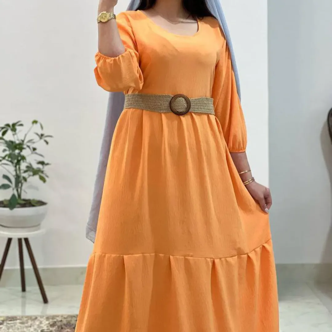 جنس پارچه ابروباد فوق العاده باکیفیت،بدون آبرفت و رنگ رفت یه پیراهن بلند با تنخور کاملا عروسکی برای بیرون خیلی شیکه نه سایه میده ونه بدن نما هستش،