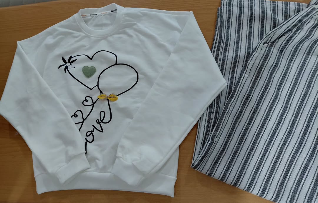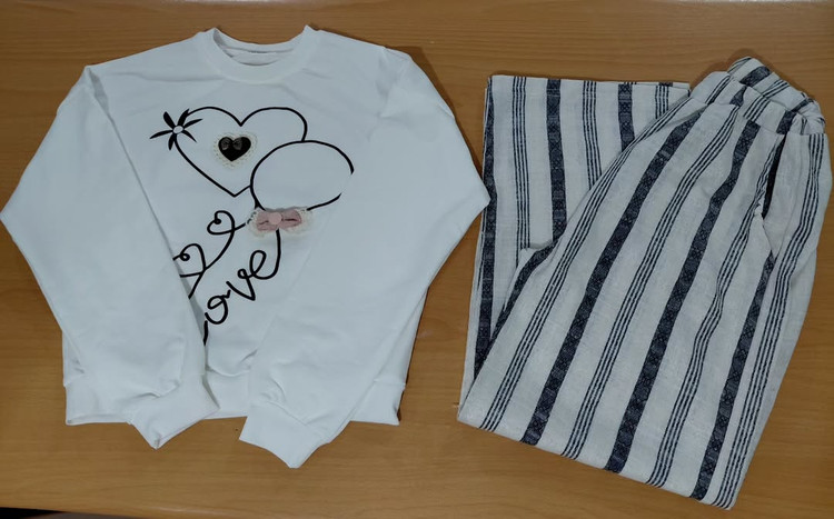 این محصول شامل یک کراپ و شلوار از جنس بلوز پنبه و شلوار لینن با سایزهای ۶۰ و ۶۵ میباشد. سایز ۶۰ دارای قد کراپ ۵۰، پهنای ۴۷ و قد آستین ۴۴ و قد شلوار ۹۰ است. سایز ۶۵ دارای قد کراپ ۵۳، پهنای ۵۱ و قد آستین ۴۷ و قد شلوار ۱۰۰ است.