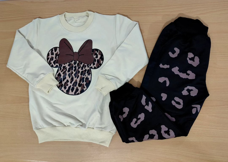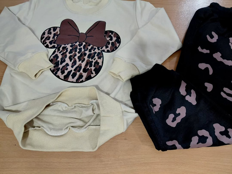 ست دخترانه طرح میکی کرمی چاپ پلنگی جنس پنبه دورس کد ۴۲۸