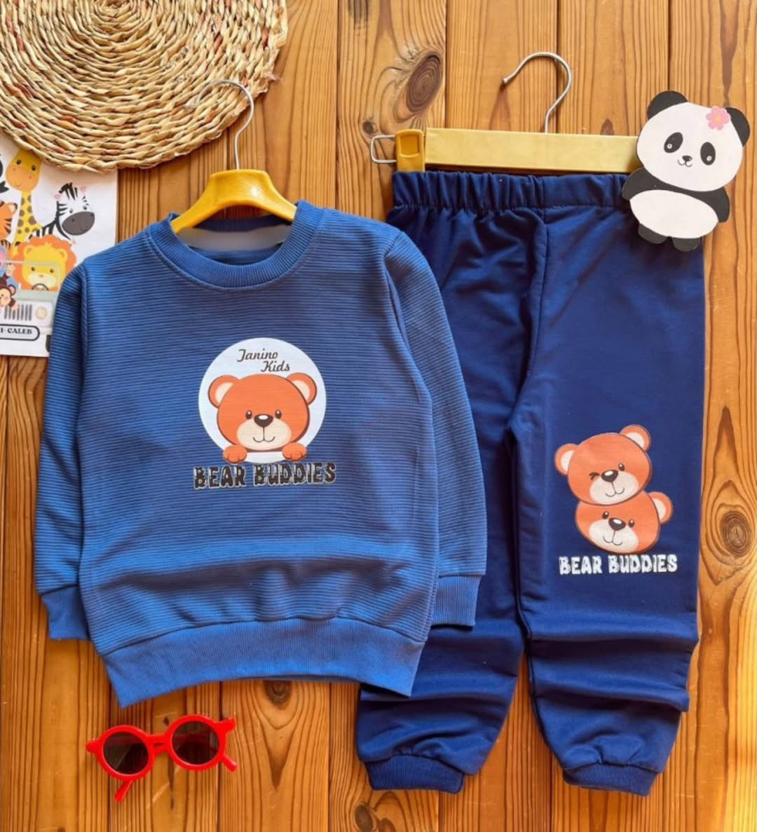 بلوز وشلوار خرسی جنس پنبه درجه یک چاپ زول/بدون آبرفت اسپرت مناسب دختروپسر. سایز ۴۵ قد بلوز ۴۸، پهنا ۳۴، قد آستین ۴۱، قد شلوار ۶۵. سایز ۵۰ قد بلوز ۵۳، پهنا ۳۷، قد آستین ۴۴، قد شلوار ۷۵.