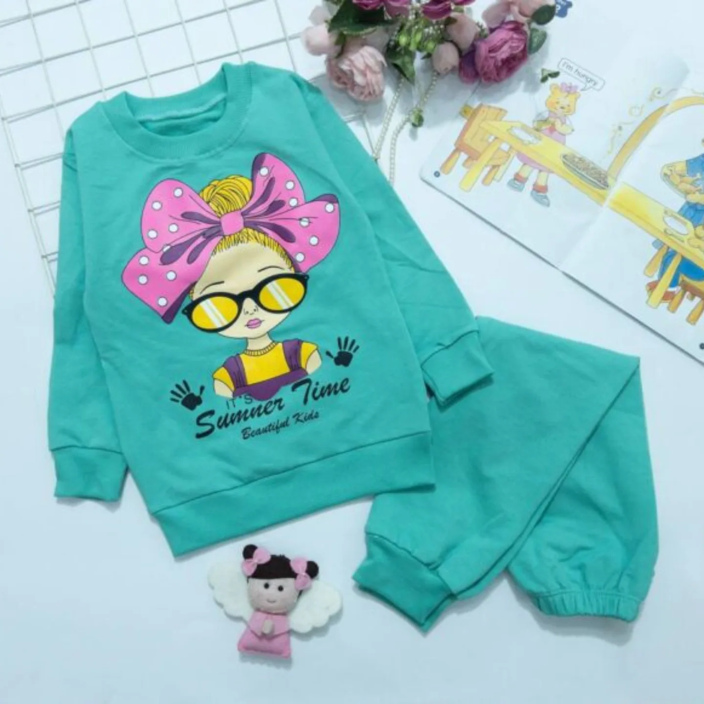 بلوزوشلواردخترباعینک آفتابی جنس پنبه دورس درجه یک با چاپ زول کد ۲۸۵